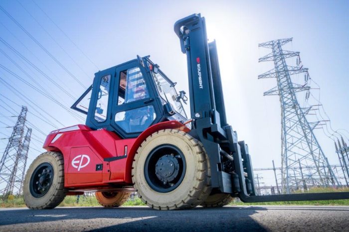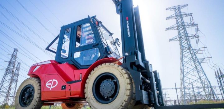 The powerful EFL 10T HV from EP Equipment is a low-maintenance, high-voltage lithium-ion forklift truck equipped with a PMS synchronous motor. It is part of EP’s new heavy-duty forklift series, ranging from four to 25 tons, which combines the benefits of electric and combustion engines. The 10-tonne truck reaches travel speeds of up to 30 km/h and delivers exceptional performance, particularly in climbing ramps, lifting speed, and energy efficiency.