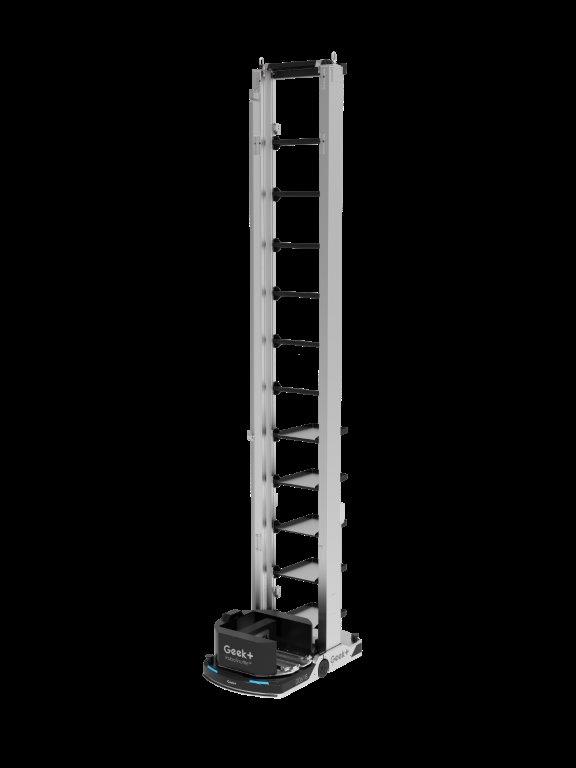 The RoboShuttle 11 from Geekplus can reach shelves up to eleven meters high, making it one of the tallest tote-to-person robots available. Equipped with AI algorithms, sensors, and cameras, it can identify various box sizes, obstacles, and objects, even if they are jumbled up. Operating in narrow aisles with extended arms to access additional storage depths, it promises to significantly increase the vertical storage capacity of small and medium-sized warehouses.