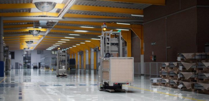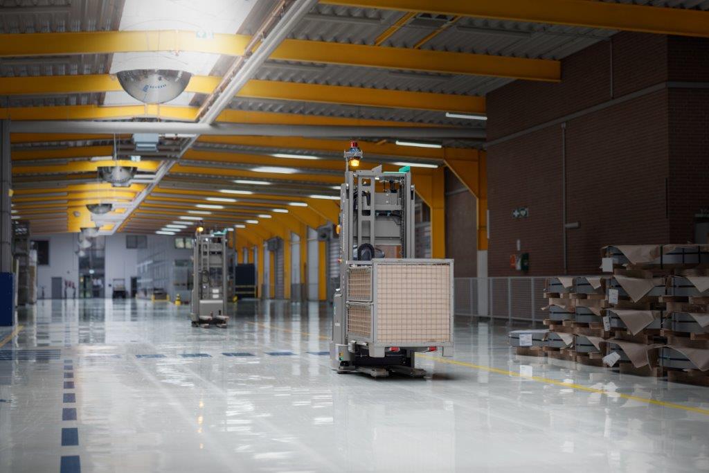 The PX2 inductive transport system from ecoro focuses on efficient material supply. The automated shuttles, operating within a fenced-in lane, can transport up to four pallets or 2.4 tons, making them especially suited for high volumes. The combination of a driverless transport system and an electric floor conveyor promises up to 80 percent cost reduction for milk runs and other constant pallet transport flows within factory premises or industrial estates.